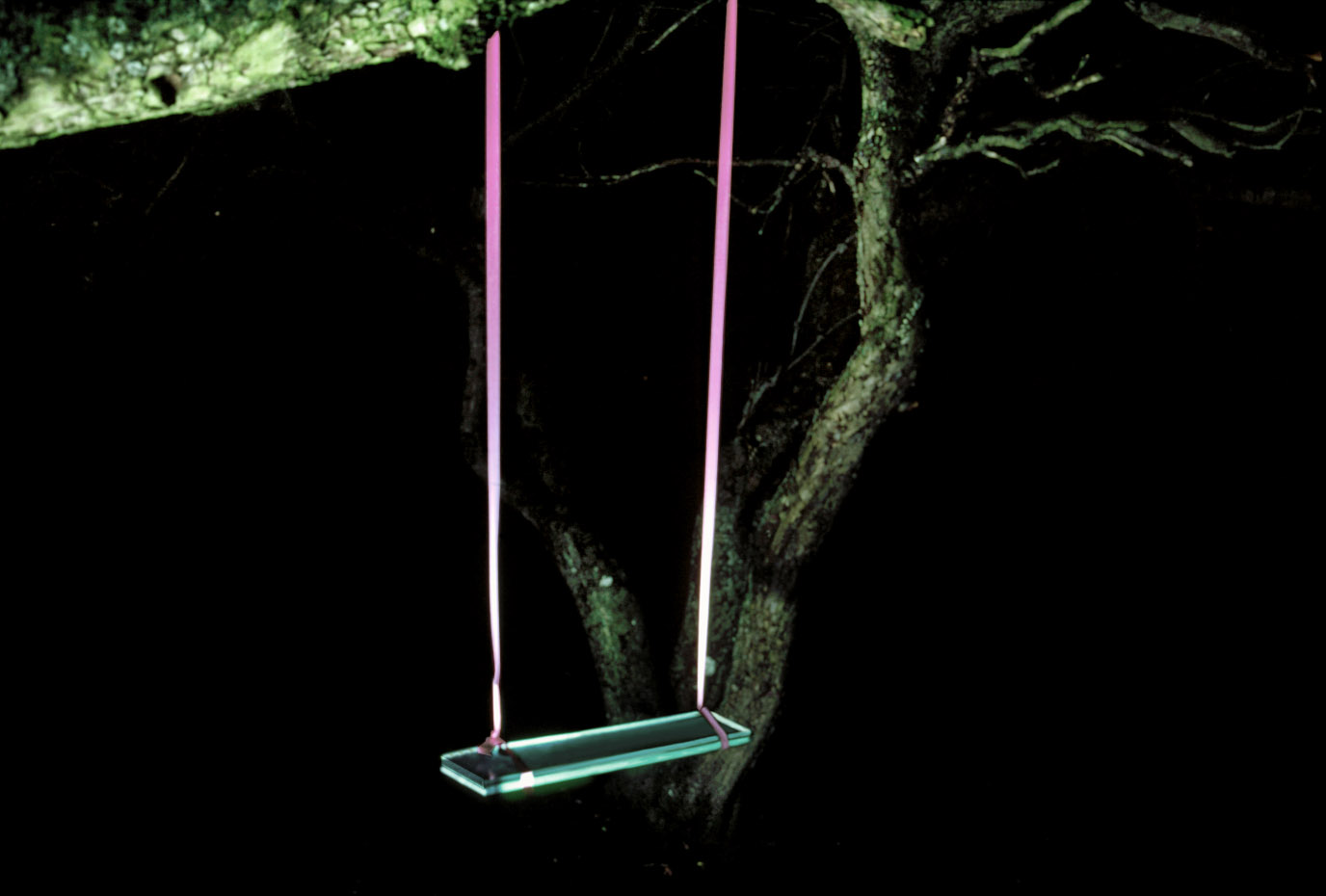 .. Glass Swing ( Floating State) (Glass, fluorescent light, satin, steel tube, apple trees.) 2001 Share this: Click to share on X (Opens in new window) X Click to share on Facebook (Opens in new window) Facebook Like Loading...