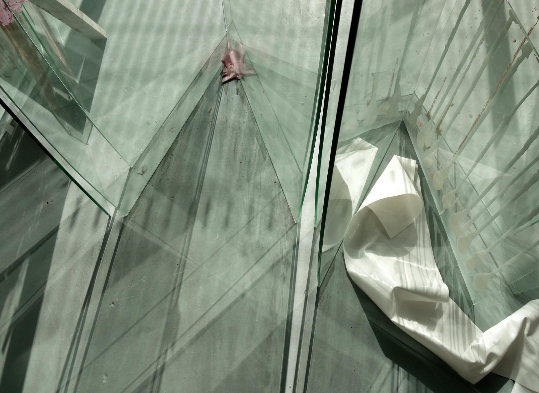 .. Sculpture -‘Untitled (glass, clay slip, silicon, plastic, sunlight) 2013’ C-type photograph, from Exhibition ‘From the First Deep Breath’ 2013, Edinburgh Sculpture Workshop. Share this: Click to share on X (Opens in new window) X Click to share on Facebook (Opens in new window) Facebook Like Loading...