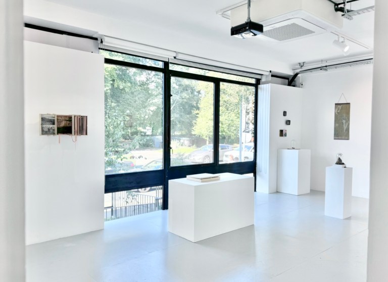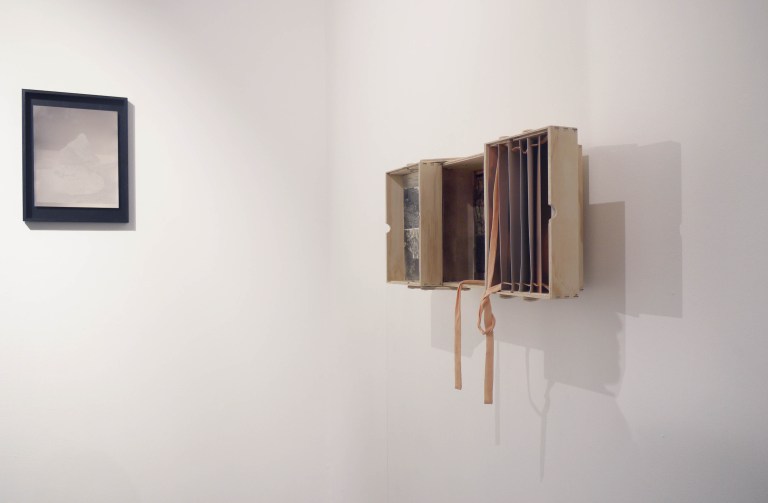 Wendy Hardie’s ‘UNDER, B E T W E E N (after before)’ Itn. II from the artist’s ‘folding, faulting, uplift’ expanded environmental photography series 2024-25 (RHS) and Ed Sykes ‘Rock’ (LHS).
