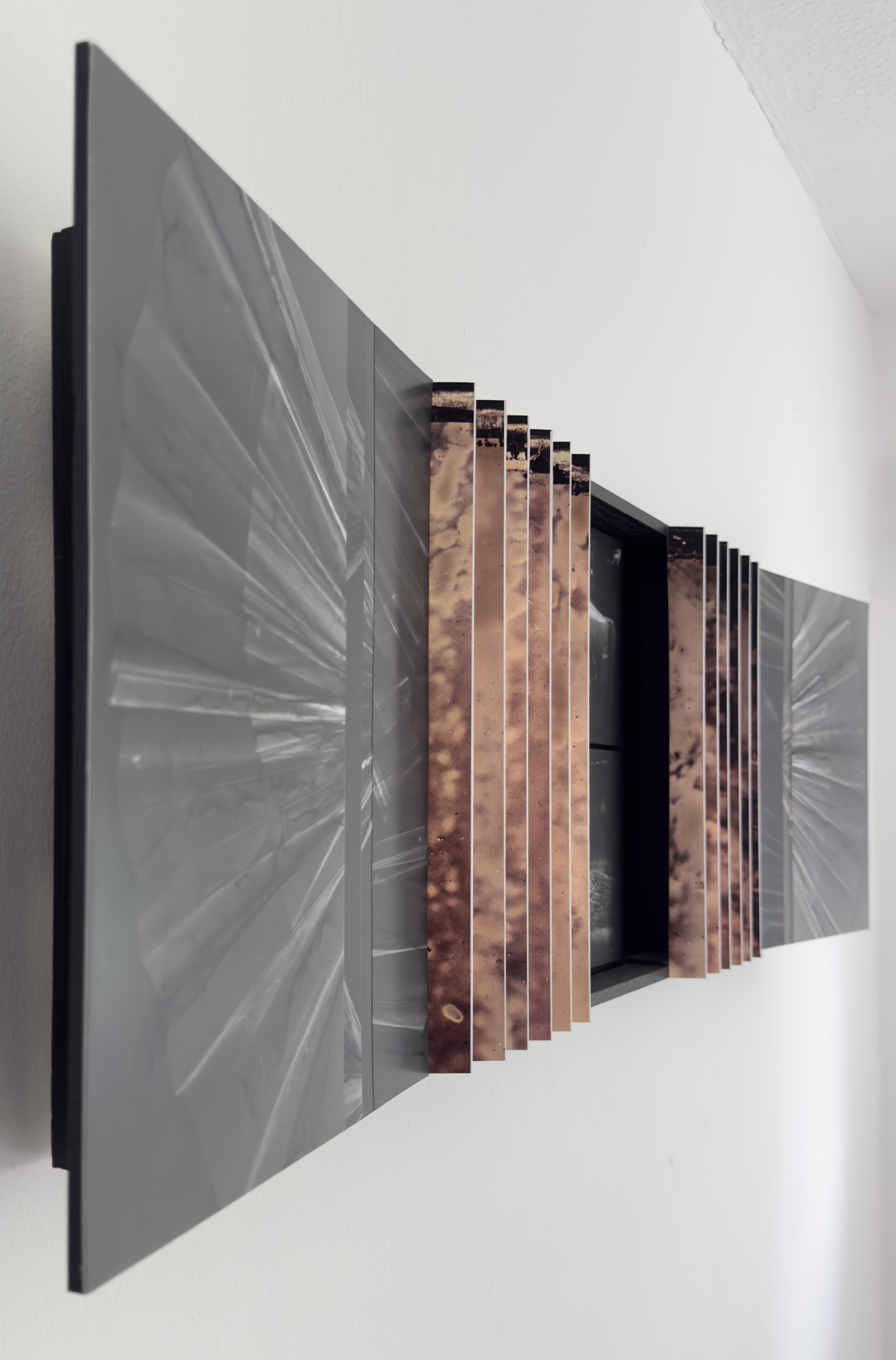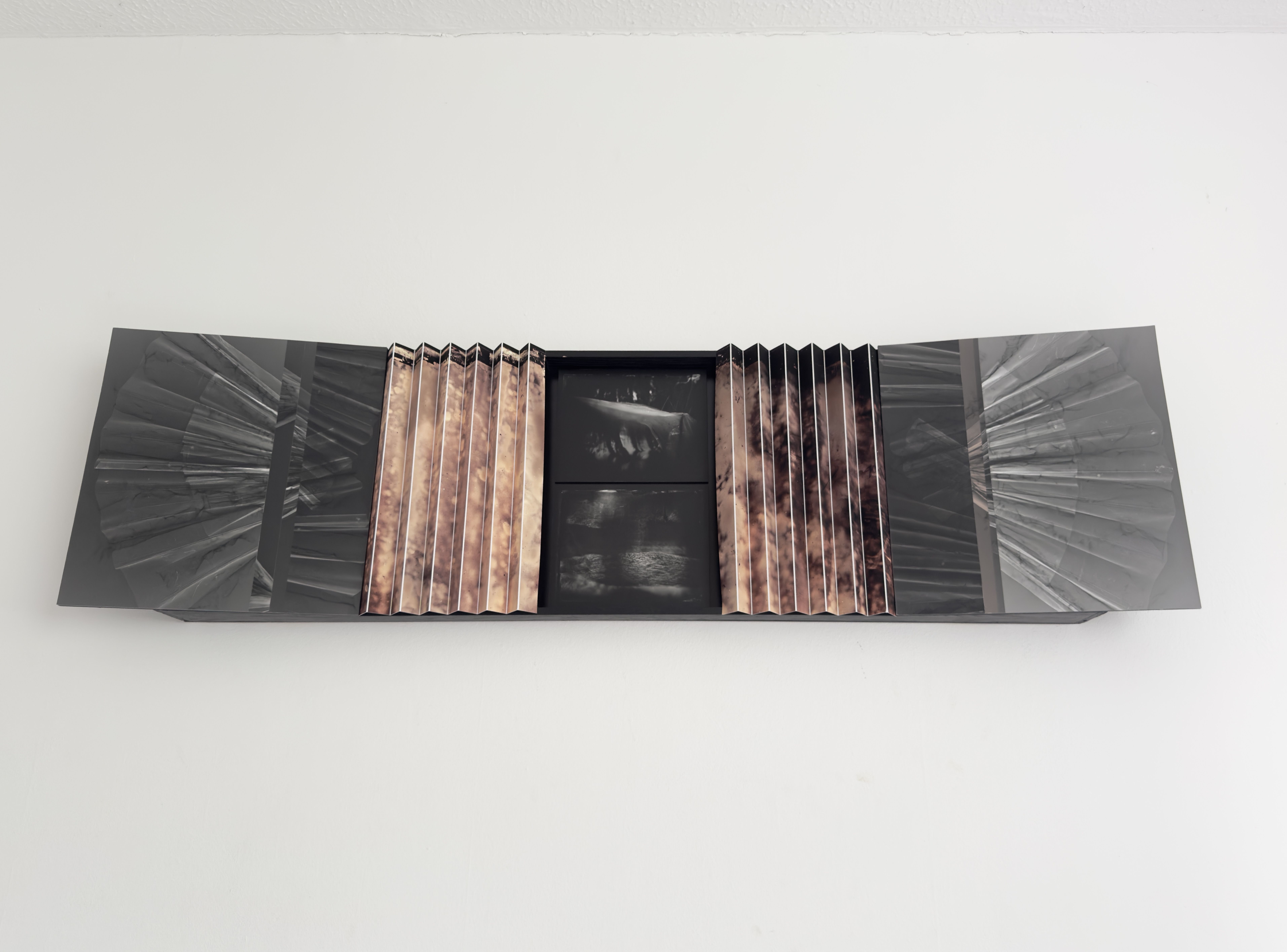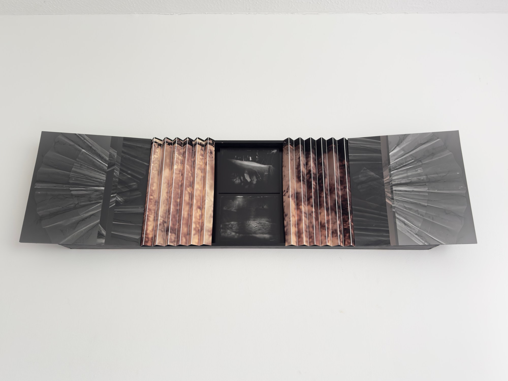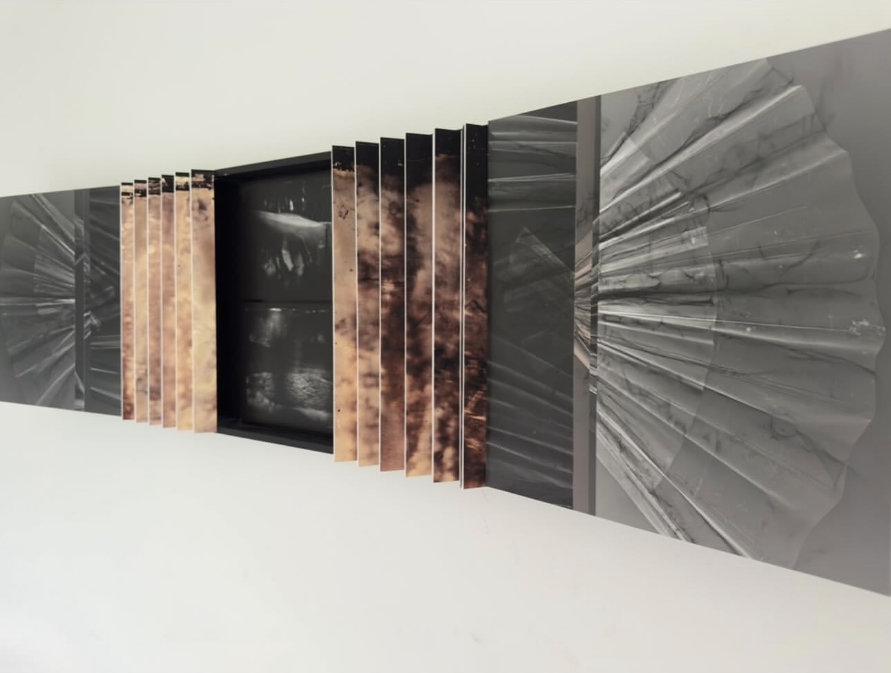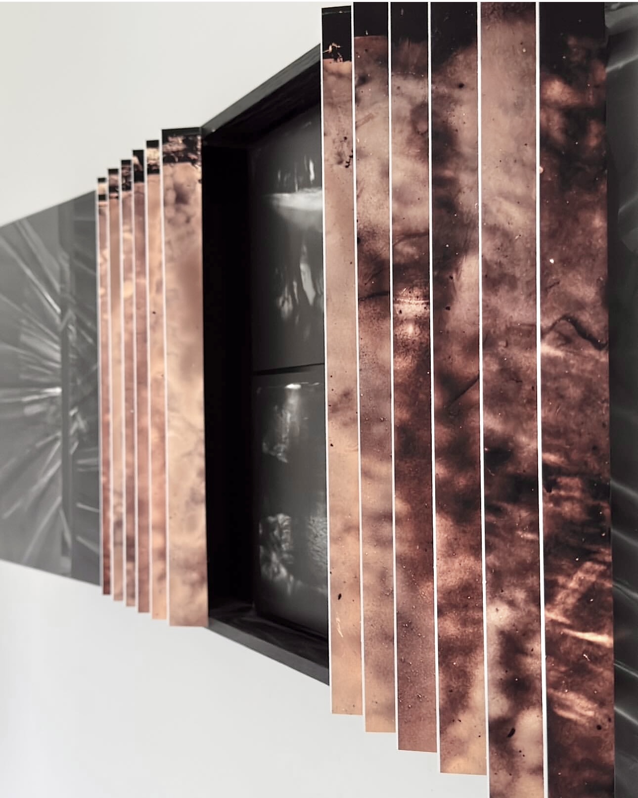 ‘Altered’ 2021-24. © Wendy I Hardie. 3D Triptych of expanded photographic works of silver gelatin & folded pigment prints from wet plate collodion negatives, ambrotypes and photograms. From the artist’s expanded environmental photography series